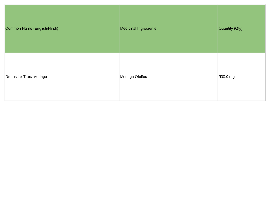 Moringa (Moringa Oleifera): is a nutrient-dense plant traditionally used in herbal medicine and valued for its high antioxidant content. Research shows that moringa leaves contain a wide range of naturally occurring compounds, including flavonoids, carotenoids, glucosinolates, tannins, and essential amino acids, which contribute to its antioxidant and protective properties. These compounds help protect cells from oxidative stress caused by free radicals and support overall cellular health.