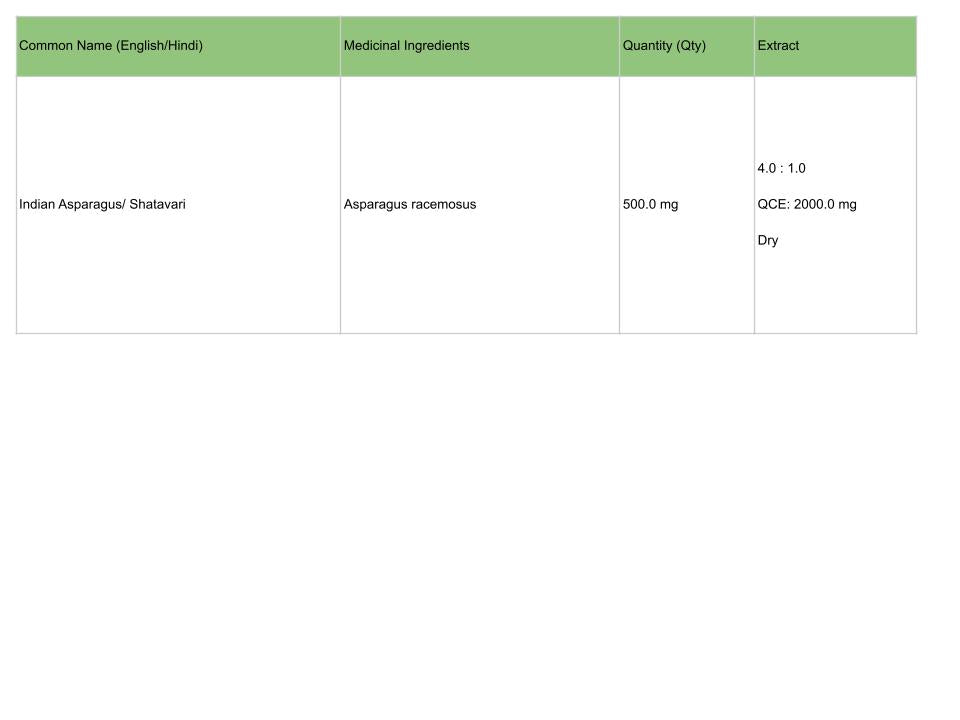 Shatavari (Asparagus racemosus): Shatavari is a well-known adaptogenic herb traditionally used in Ayurveda as a Rasayana (rejuvenating tonic) to help the body adapt to physical and mental stress. Research shows that Asparagus racemosus contains naturally occurring compounds with antioxidant, anti-inflammatory, and immune-supporting properties, which contribute to its overall role in supporting general health and resilience.