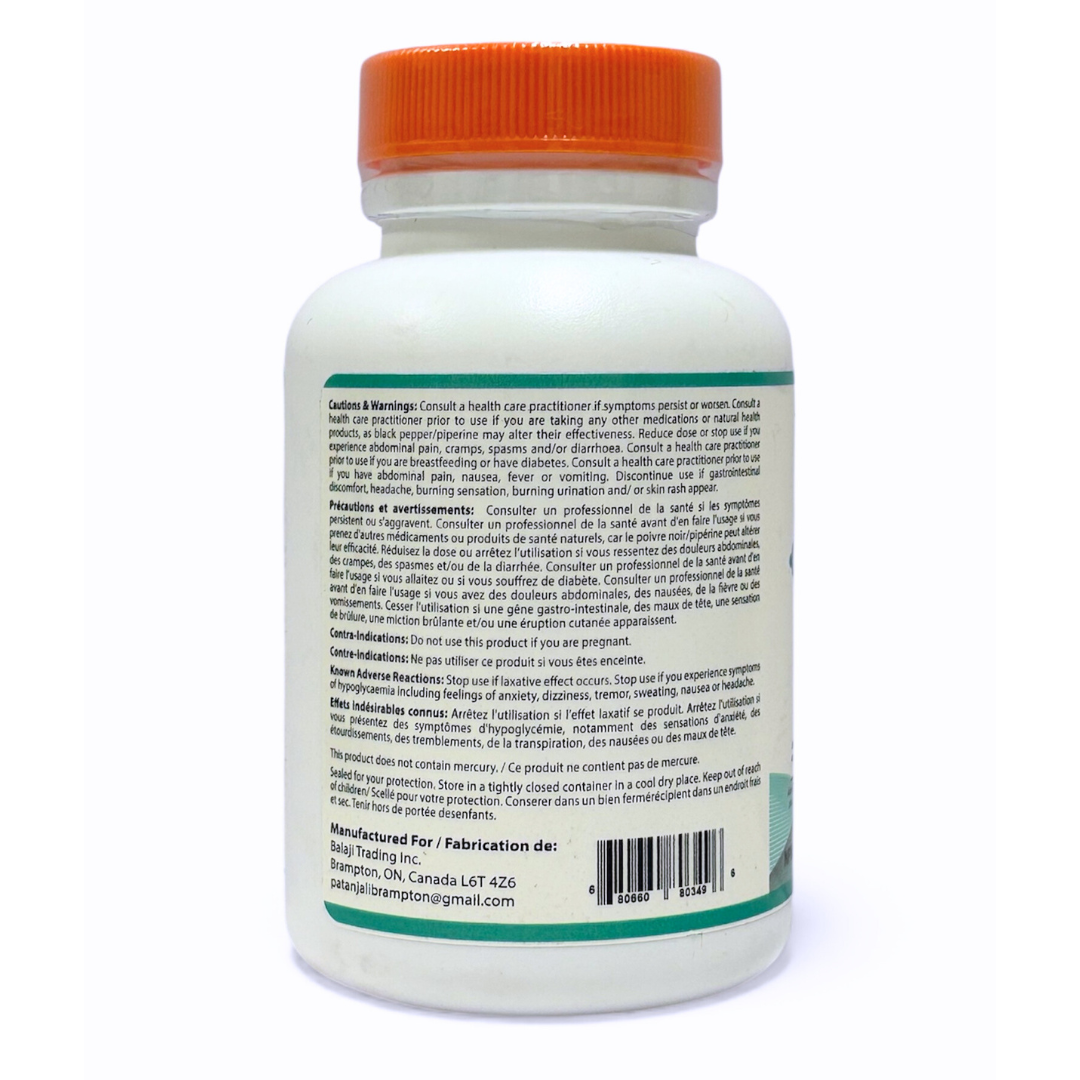 Consult a health care practitioner if symptoms persist or worsen. Consult a health care practitioner prior to use if you are taking any other medications or natural health products, as black pepper/piperine may later their effectiveness. Reduce dose or stop use if you experience abdominal pain, cramps, spasms and/or diarrhoea. Consult a health care practitioner prior to use if you are breastfeeding or have diabetes. Consult a health care practitioner prior to use if you have abdominal pain, nausea, fever or vomiting. Discontinue use if gastrointestinal discomfort, headache, burning sensation, burning urination and/or skin rash appear.