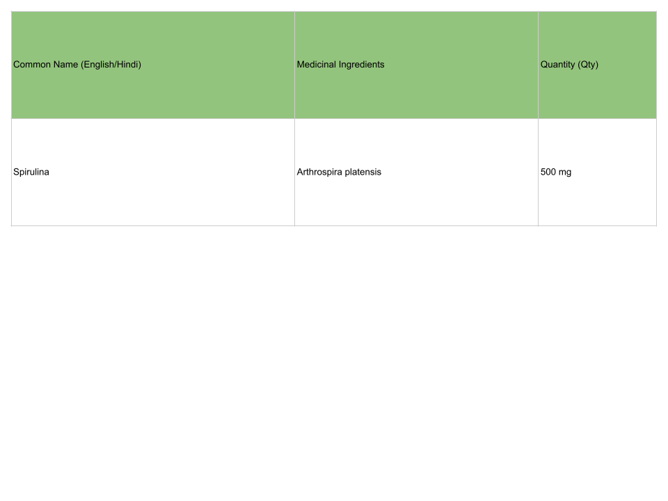 | Common Name (English/Hindi) | Medicinal Ingredients | Quantity (Qty) |