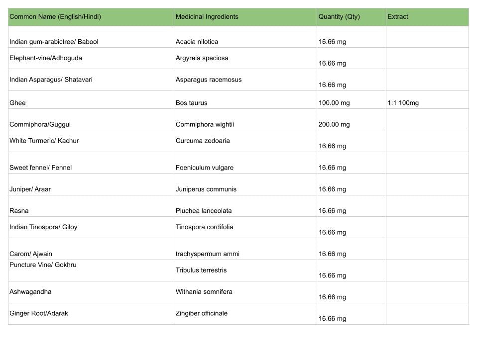 - Traditionally used in Ayurveda to help the symptoms of Sandhivata such as pain and swelling of the joints