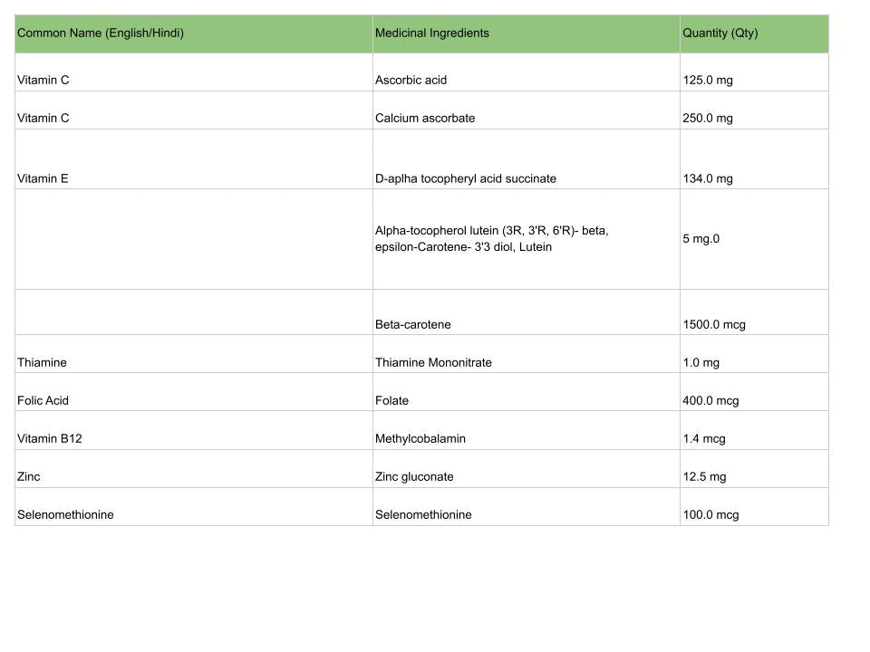 | Common Name (English/Hindi) | Medicinal Ingredients | Quantity (Qty) |