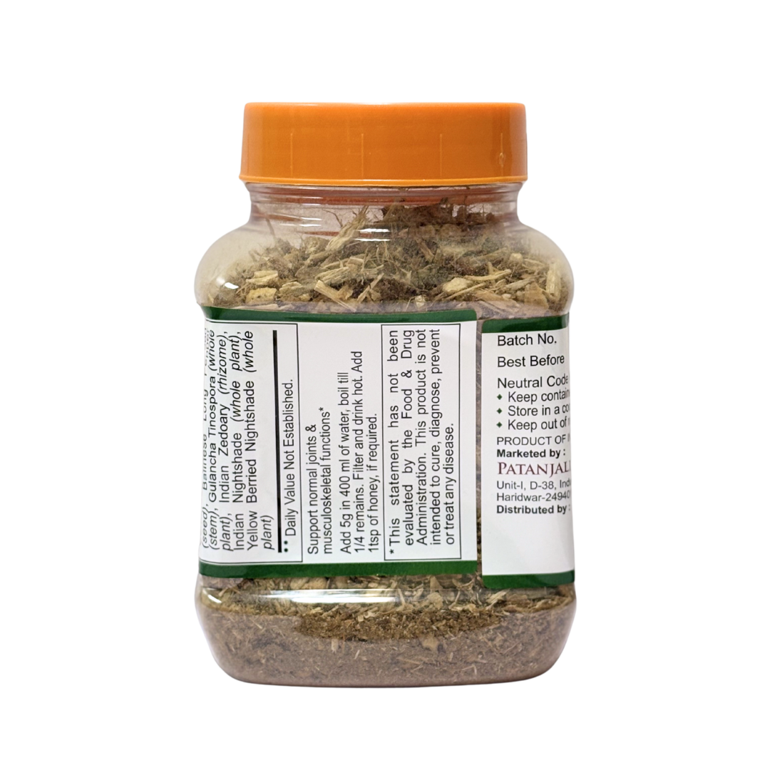 Divya Peedantak Kwath is a traditional Ayurvedic herbal tea prepared using a blend of plant-based ingredients referenced in classical texts. The formulation commonly includes herbs such as Nirgundi (Vitex negundo), Rasna (Pluchea lanceolata), and Ginger (Rhizome), which are frequently used in traditional Ayurvedic kwath preparations. It is prepared by boiling the herbal mixture in water and consumed according to traditional practices as part of routine wellness regimens within Ayurveda.
