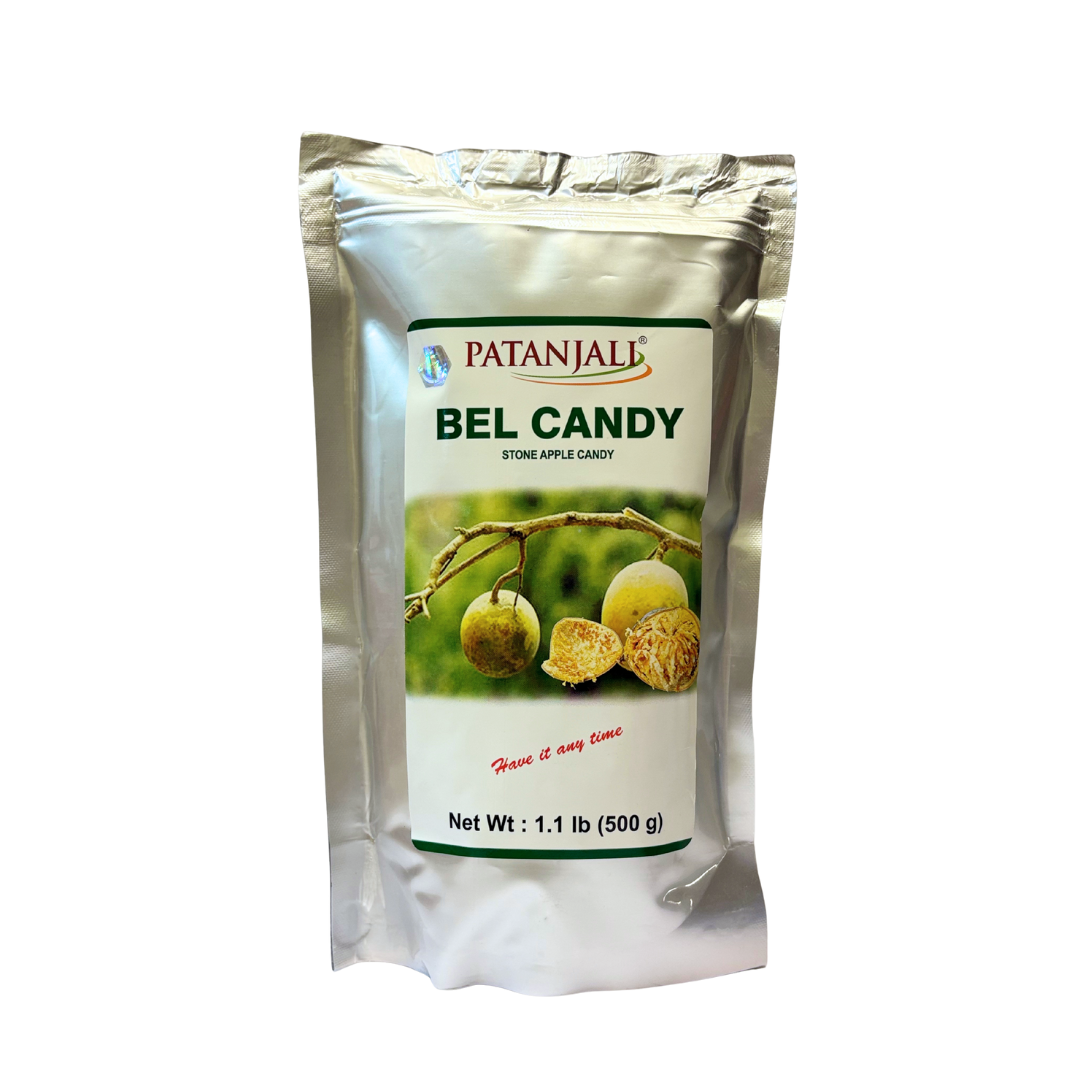 Patanjali Bel Candy is a fruit-based confection prepared using bel (wood apple) and sugar. It has a sweet, tangy flavour and a chewy texture, and is commonly enjoyed as a traditional candy or snack.